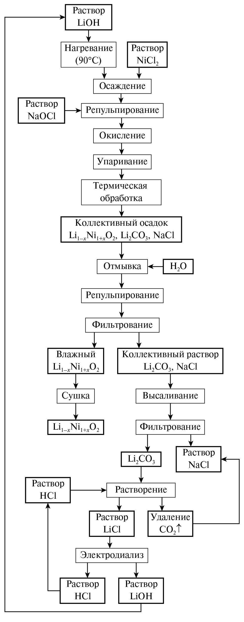 Рис. 3. Принципиальная технологическая схема получения никелата лития.