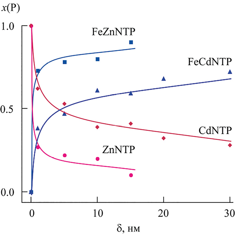 Взаимодействие ZnNTP и CdNTP с ионами Fe2+ описывается уравнениями реакций (1) и (2), представленными в работе [18]: