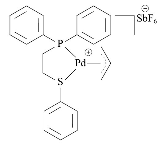 Синтез катионного аллильного комплекса палладия с (2-фенилтиоэтил)дифенилфосфином. Выход 89%.