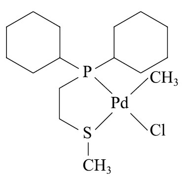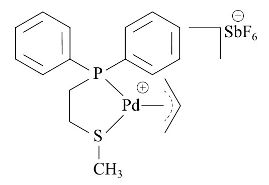 Синтез катионного аллильного комплекса палладия с (2-метилтиоэтил)дициклогексилфосфином. Выход 78%.