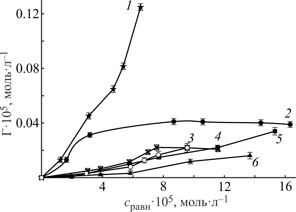 Измерение поверхностного натяжения на границе раздела водный раствор реагента–воздух выполняли сталагмометрическим методом.3 Стандартной жидкостью служил 0.1 моль∙л–1 раствор NaOH.