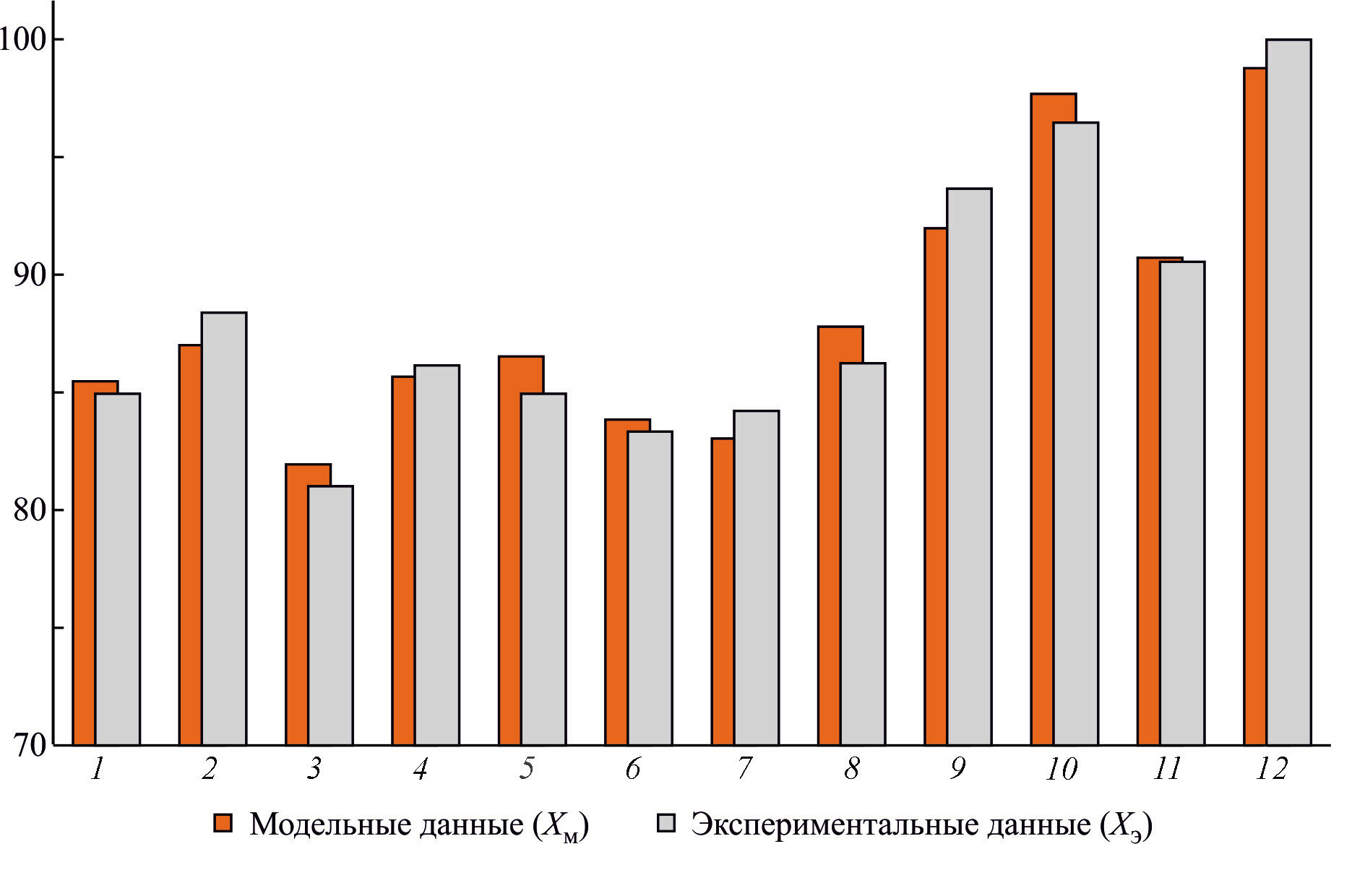 Выходной слой представлен одной переменной (транспорт кальция, X), соответствующей отношению содержания ионов кальция в жидкой фазе к общему содержанию в системе. Расчет транспорта кальция основан на сравнении коэффициентов концентрирования, рассчитанных по значениям кальциевой жесткости и содержанию хлоридов. При эффективной реагентной обработке водооборотной системы данный показатель стремится к 100%, минимальное допустимое значение на практике составляет 85% [11, 12].