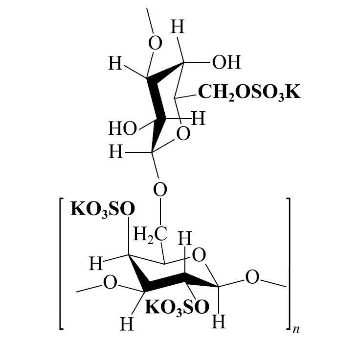 Нами разработан аэросилсодержащий гель, представляющий собой водно-аэросил-глицеринсодержащую дисперсию (в соотношении компонентов 1:2:13 соответственно) с добавлением консерванта Нипагин® М натрия (0.1%). Данный гель использован в качестве гидрофильной основы в фармацевтической технологии получения лекарственной формы для наружного применения «Агсулар® гель 1.5%» [12], действующим веществом которой является фармацевтическая субстанция Агсулар®, обладающая гиполипидемической и антикоагулянтной активностью [13]. Агсулар® представляет собой сульфатированный арабиногалактан в виде калиевой соли (I), структурная организация и основные физико-химические свойства которого схожи с исходным полисахаридом — арабиногалактаном [14]. Агсулар®, так же как и арабиногалактан, является водорастворимым биополимером со сферической формой частиц и средневесовой молекулярной массой (26.0–28.0 кДa), динамическая вязкость (η) его водных растворов имеет низкие значения [(1–2)·10–3 Па·с], не зависящие от концентрации биополимера [15].