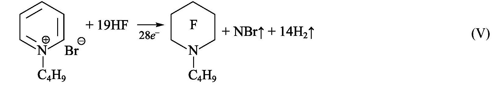 В настоящей работе провели серию электрохимических синтезов ряда перфторпродуктов, исходным соединением для которых выбраны соответствующие производные N-замещенного пиридиния (III). На первой стадии под действием безводного HF происходит замещение атома галогена на фтор, на второй стадии — электрохимическое фторирование с образованием ряда перфторпродуктов (перфторпентан, перфторпиперидин, соответствующий перфторамин) и электролизных газов (H2, NF3).