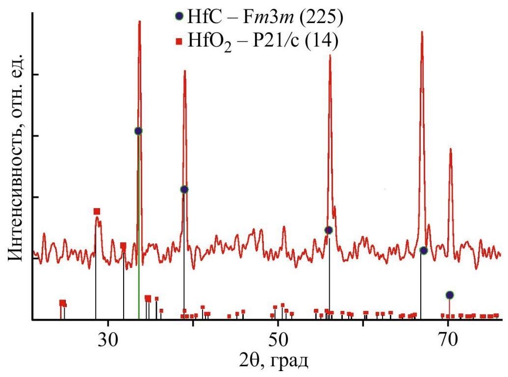 Рис. 2. Дифрактограмма материала, спеченного из механохимически синтезированного композита HfC/Fe.