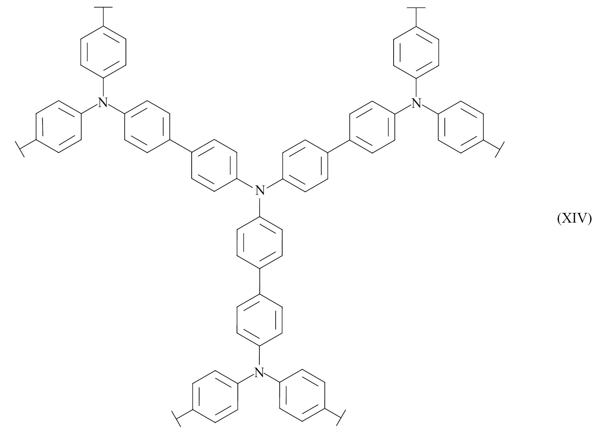 Благородные металлы могут применяться в качестве активных катализаторов при облагораживании биотоплива, но их высокая стоимость и ограниченные запасы в земной коре создают препятствия для широкого практического применения. В связи с этим можно рассматривать создание биметаллических катализаторов на основе благородных металлов с добавками недорогого металла. В работе [86] был получен высокоактивный, стабильный, селективный и магнитно-извлекаемый наногибридный катализатор Pd-Fe3O4 на основе пористого органического полимера [PPTPA — нанопористый политрифениламин (XIV)], который в свою очередь получали методом одностадийной окислительной полимеризации из трифениламина. Наногибридный катализатор Pd-Fe3O4/PPTPA проявляет существенно более высокую активность по сравнению с монометаллическими аналогами (Pd/PPTPA и Fe3O4/PPTPA). Авторы полагают, что такое повышение активности объясняется синергическим эффектом, вызванным электронными взаимодействиями между Pd и Fe, которые подтверждались различными исследованиями, включая смещение энергии связи в рентгеновских фотоэлектронных спектрах. Кроме того, наногибридный катализатор продемонстрировал исключительную стабильность, сохраняя активность и селективность по γ-валеролактону при многократном повторном использовании — на протяжении 10 циклов — на практически неизменном уровне. Исследования методом просвечивающей электронной микроскопии высокого разрешения подтвердили образование и равномерное распределение наногибрида Pd-Fe3O4 на внешней поверхности политрифениламина. Наилучшие показатели (96%-ная конверсия левулиновой кислоты при селективности по γ-валеролактону 94% за 12 ч при 140°С) достигались при использовании в качестве источника водорода муравьиной кислоты, тогда как при давлении водорода эффективность катализатора была несколько ниже (52%-ная конверсия и 71%-ная селективность по γ-валеролактону за 12 ч, 120°С, 0.5 МПа Н2).