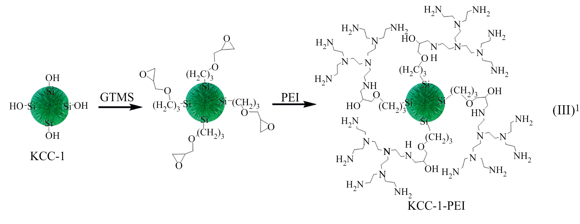 В работе [73] вместо довольно дорогостоящих дендримеров на поверхность волокнистого наносиликата KCC-1 через промежуточную функционализацию (3-глицидилоксипропил)-триметоксисиланом наносили полиэтиленимин (Mw ~ 800) (III). Синтезированный таким образом материал пропитывали раствором Na2PdCl4 с последующим восстановлением NaBH4 и получением катализатора KCC-1-PEI/Pd, который был испытан в жидкофазном гидрировании фенилацетилена. Данная система характеризовалась равномерным распределением частиц палладия со средним размером ~2.5 нм, содержание металла в системе составило 11%. Вероятно, этим была обусловлена низкая селективность катализатора: полное превращение стирола в этилбензол наблюдали уже спустя 60 мин (25°С, 1 атм H2, субстрат/Pd = 65 моль/моль).