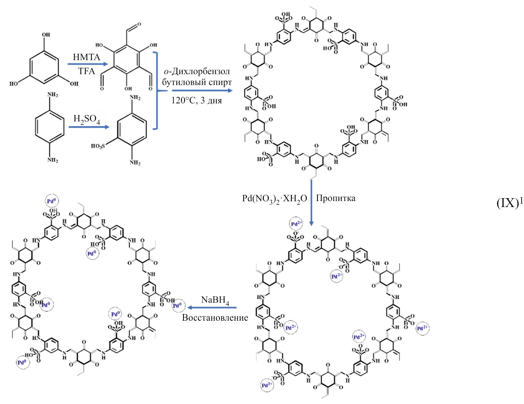 Между тем, данные материалы за счет наличия в их структуре ароматических фрагментов могут быть довольно легко модифицированы различными функциональными группами, например амино- [102] и сульфогруппами [103], а также дифенилфосфинами и дендримерами [104]. Постмодификация фенол-формальдегидных смол не только способствует равномерному закреплению наночастиц палладия, но и позволяет регулировать их каталитическую производительность.
