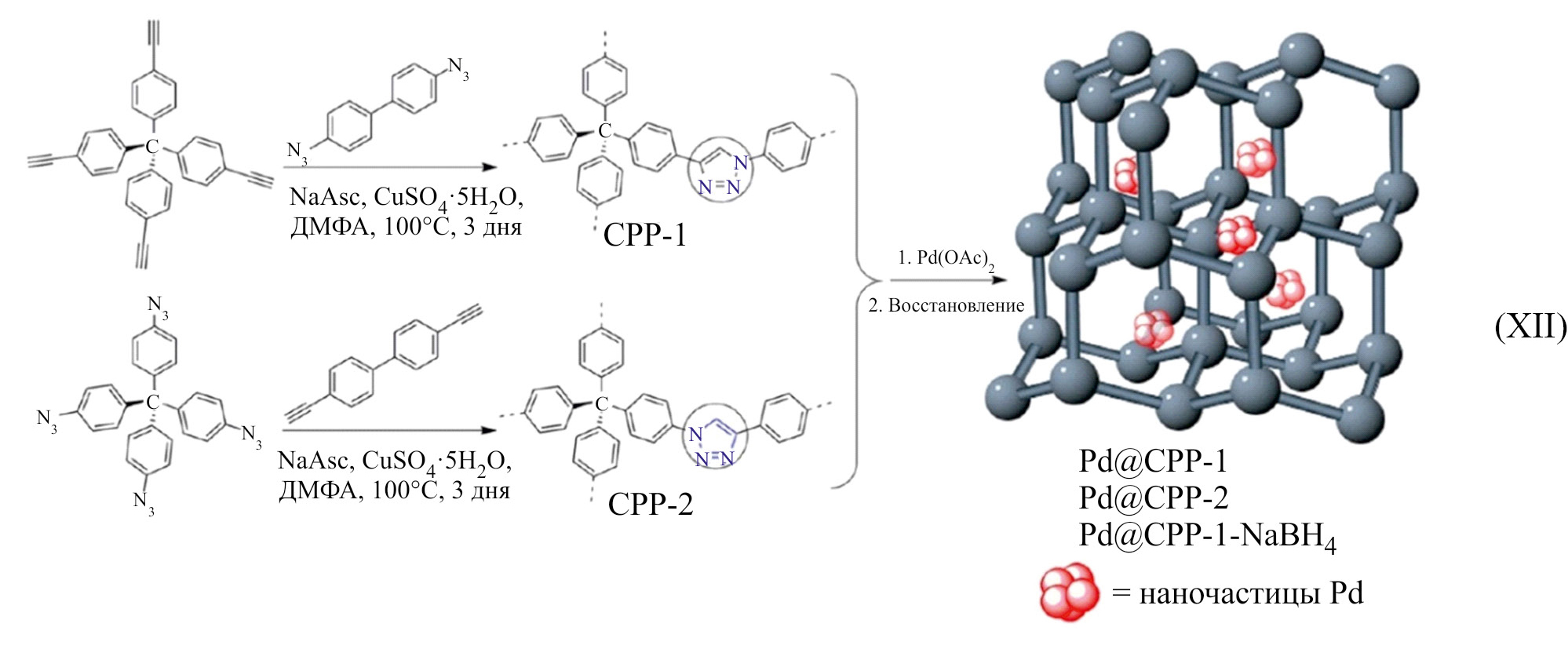 - Li L., Zhao H., Wang J., Wang R. Facile fabrication of ultrafine palladium nanoparticles with size- and location-control in click-based porous organic polymers // ACS Nano. 2014. V. 8. N 5. P. 5352–5364. https://doi.org/10.1021/nn501853g
