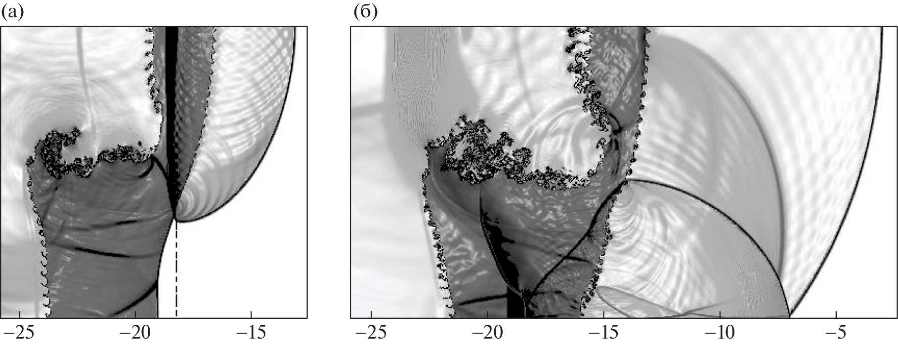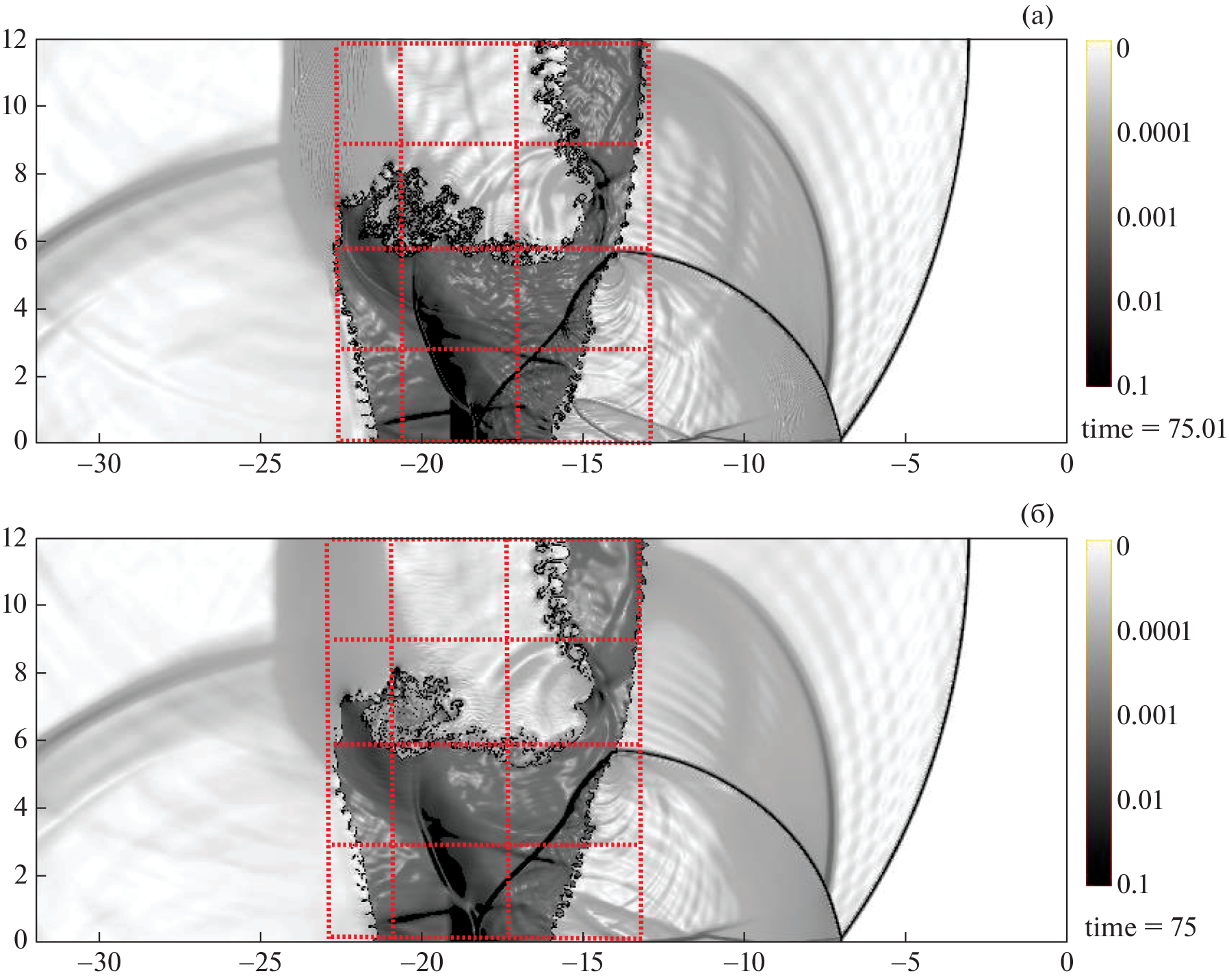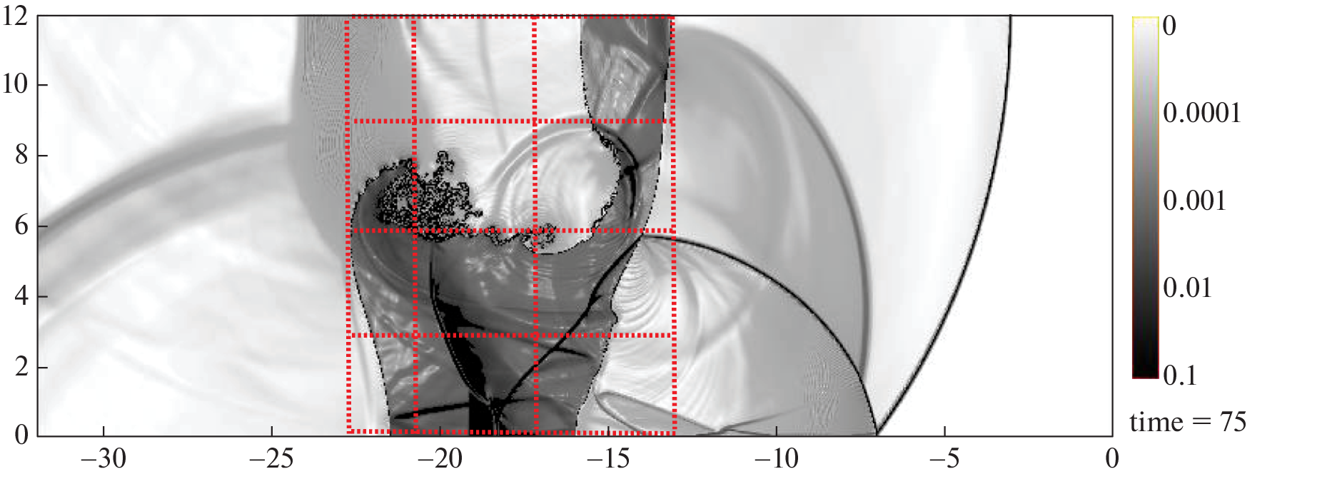 - Gowardhan A., Grinstein F. Numerical simulation of Richtmyer–Meshkov instabilities in shocked gas curtains // J. Turbulence. 2011. V. 12. № 43. P. 1–24.