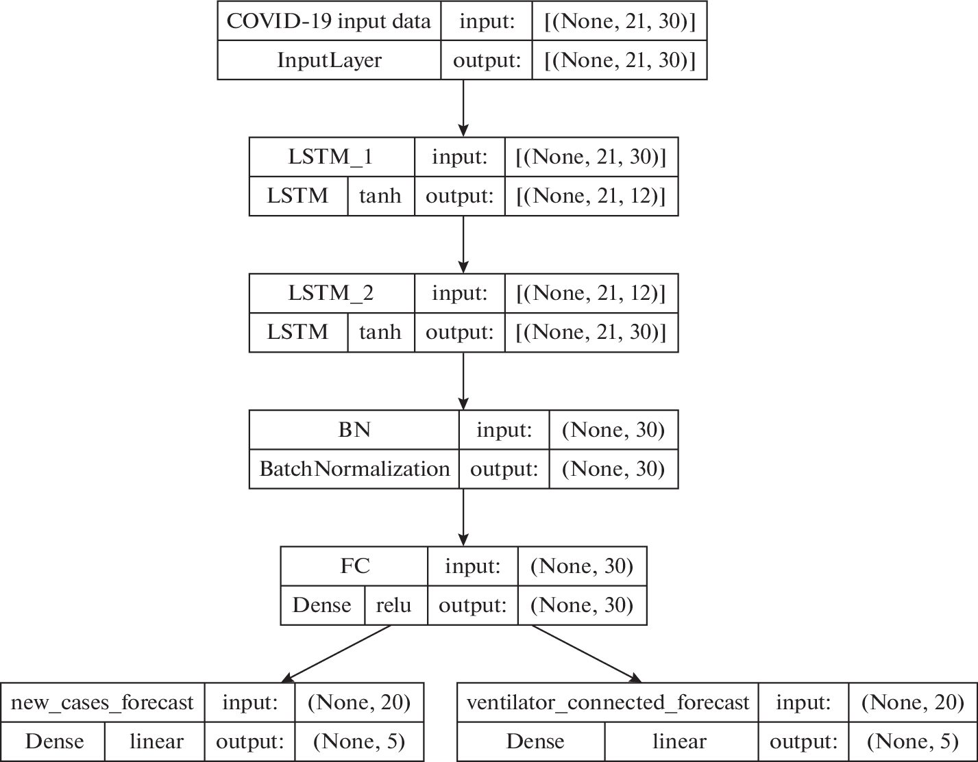 - Nikparvar B., Rahman M.M., Hatami F., et al. Spatio-temporal prediction of the COVID-19 pandemic in US counties: modeling with a deep LSTM neural network // Sci. Rep. 2021. V. 11. P. 21715.