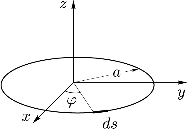 Функцией Грина осесимметричного потенциального течения будет функция тока вихревого осесимметричного кольца радиуса . Согласно формуле Био–Савара поле скорости вихревого кольца имеет вид (фиг. 1):