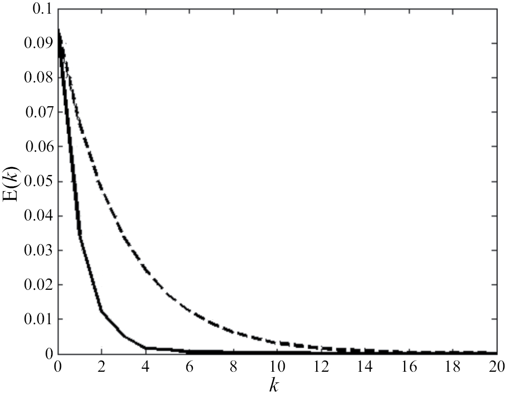 и сравнение скорости сходимости алгоритмов будем проводить по числу шагов, при котором E(k) уменьшится в 10 раз относительно начального значения. Матрицa Q и положительные скаляры R, σ были выбраны, исходя из принципов теории ЛКР: