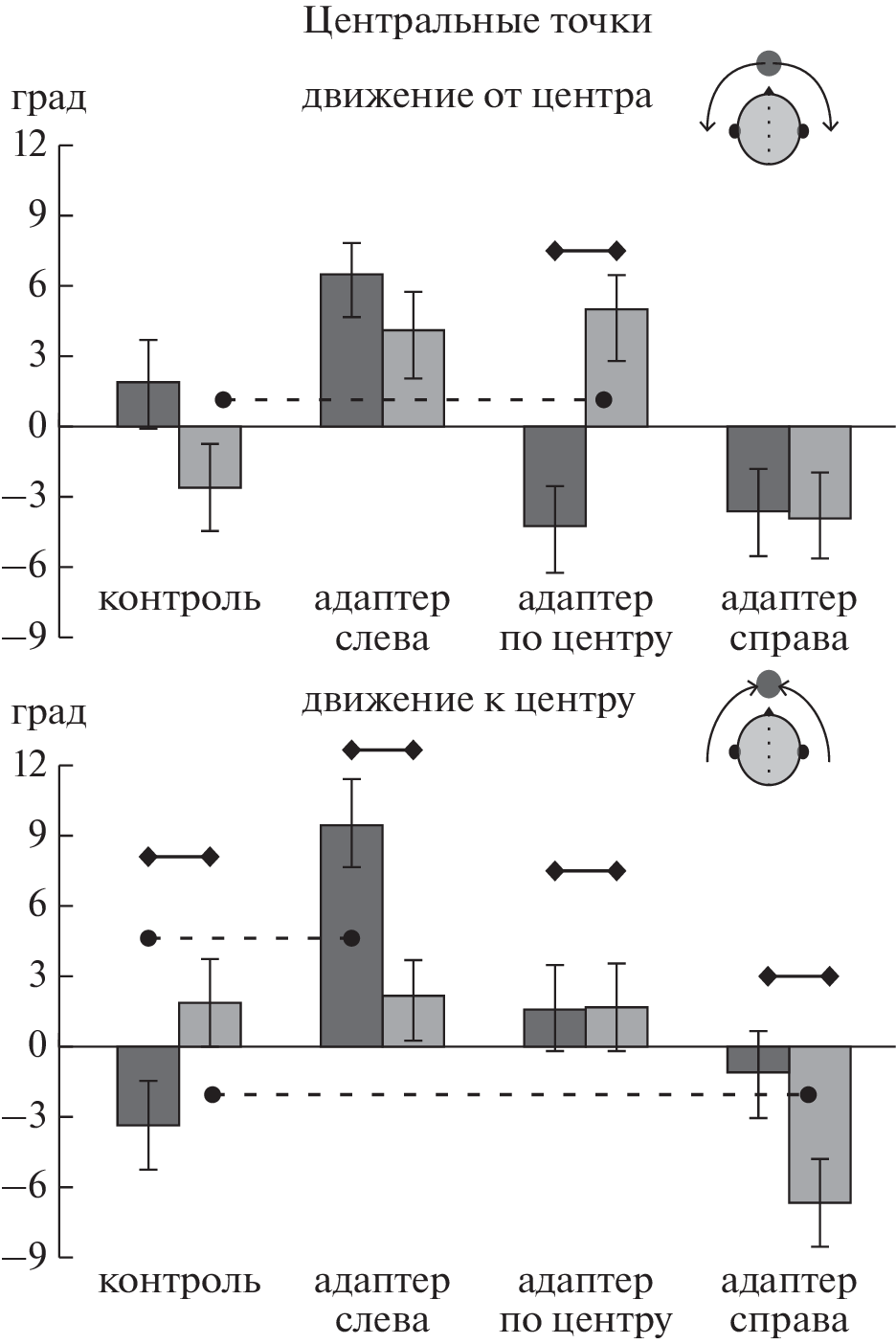 Perceived trajectories of dichotically presented sound stimuli with different spatial patterns were investigated in silence and after listening to stationary adapters. The spatial position of all stimuli was determined by the interaural level differences. The subjects indicated the perceived position of the beginning and end of the stimulus trajectory. Lateralized stationary adapters had no effect on the perceived position of the neighboring (ipsilateral) stimuli, but “pushed away” the stimuli located on the opposite side of the acoustic space. After exposure to the central adapter, the lateral points of the perceived trajectories were pushed away from the adapter, regardless of the motion direction. The motion starting points located near the central adapter shifted in the direction of the stimulus motion, but the perceived position of the central endpoints was not affected by the central adapter. The effect of stationary adapters on the perceived trajectories of moving sounds can be best explained by a three-channel model of the neural coding of auditory space.