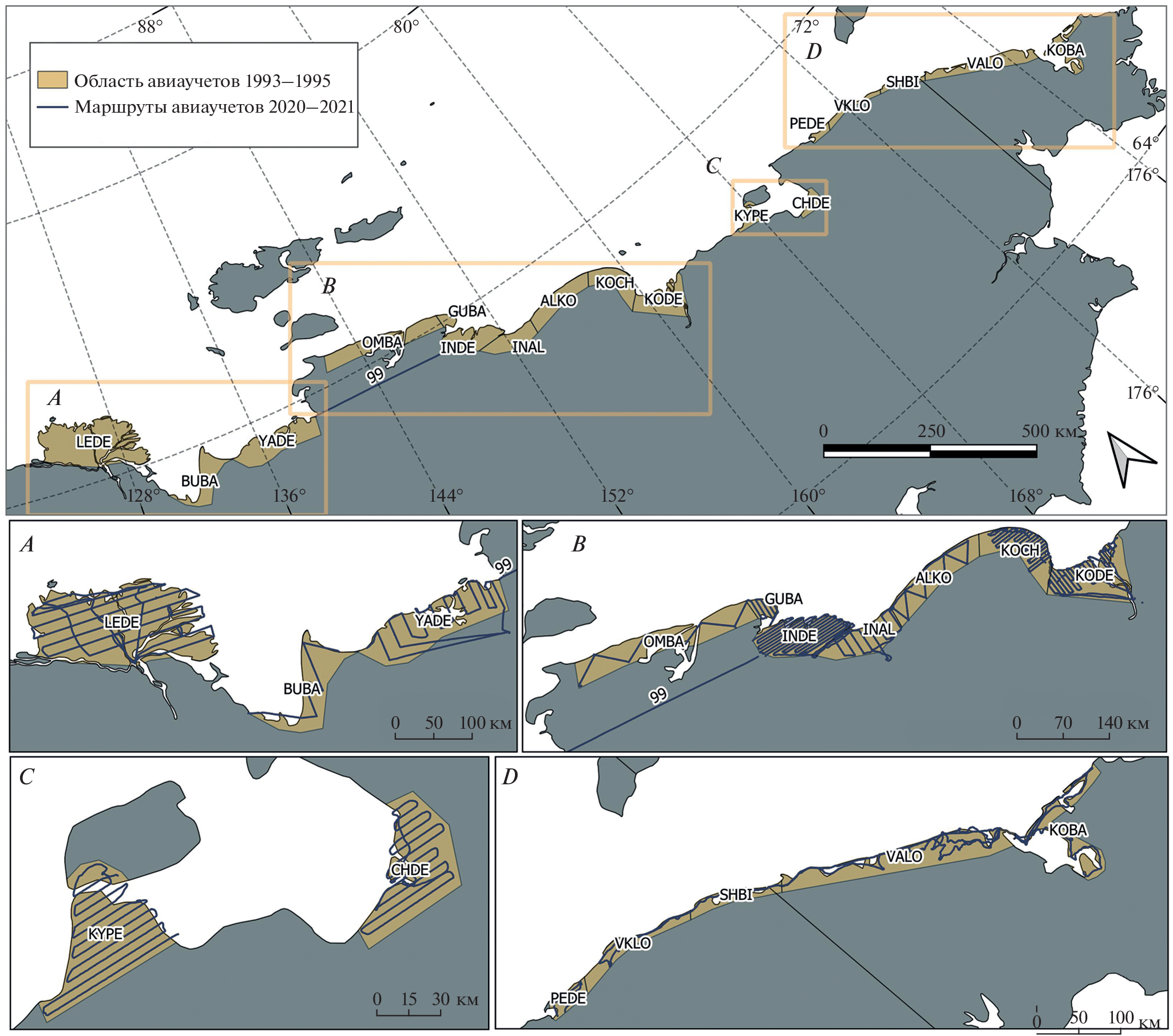 - Hodges J.I., Eldridge W.D., 2001. Aerial surveys of eiders and other waterbirds on the eastern Arctic coast of Russia // Wildfowl. V. 52. P. 127–142.