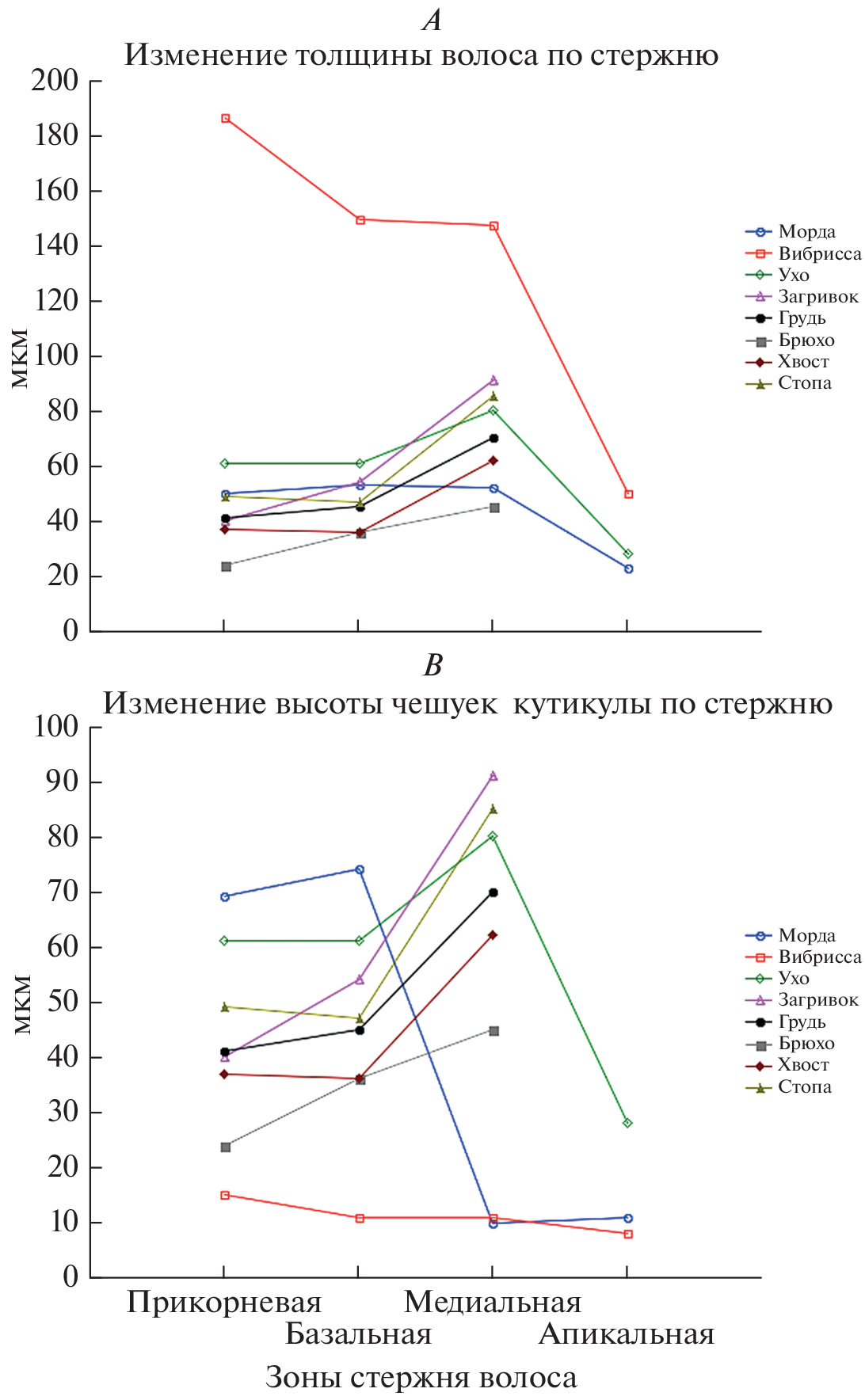 - Чернова О.Ф., Куликов В.Ф., 2011. Различия в строении стержня вибриссы и волоса млекопитающих (Mammalia) и их причины // Доклады Академии наук. Т. 438. № 6. С. 846–848.
