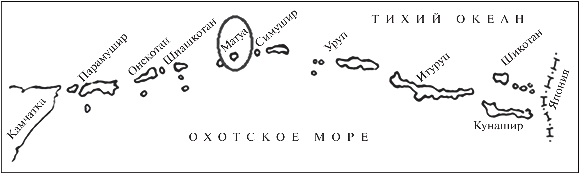 As part of the XXI Kamchatka-Kuril expedition of the Russian Geographical Society, with the assistance of the Russian Federation Ministry of Defense, a survey of the littoral ichthyofauna of Matua Island was carried out in 2017. Fishes were caught by hand under stones in tidal pools and with a net during low tide. Fishing was performed in three areas: Cape Klyuv, Cape Yurlova, and Dvoynaya Bay. The fish caught were fixed in 6% formalin. Laboratory processing was carried out: the total length TL was measured with an accuracy of 1 mm, weighed with an accuracy of 0.1 g. Representatives of the families Cottidae, Hexagrammidae, Liparidae, Pholidae, Stichaeidae, Zoarcidae were found in the littoral areas. The size characteristics of the family representatives discovered, and the areas and depth of their capture were presented. In the littoral zone, we found a number of species previously not recorded from this area in the literature. The species compositions of the littoral ichthyofauna of Paramushir Island, Matua Island, Iturup Island, Shikotan Island and Kunashir Island were compared. Only the Stippled gunnel, Rhodymenichthys dolichogaster and the Frog sculpin, Myoxocephalus stelleri were found shared by all those islands. The ichthyofauna of Matua Island shows the greatest similarity to that of Paramushir Island.