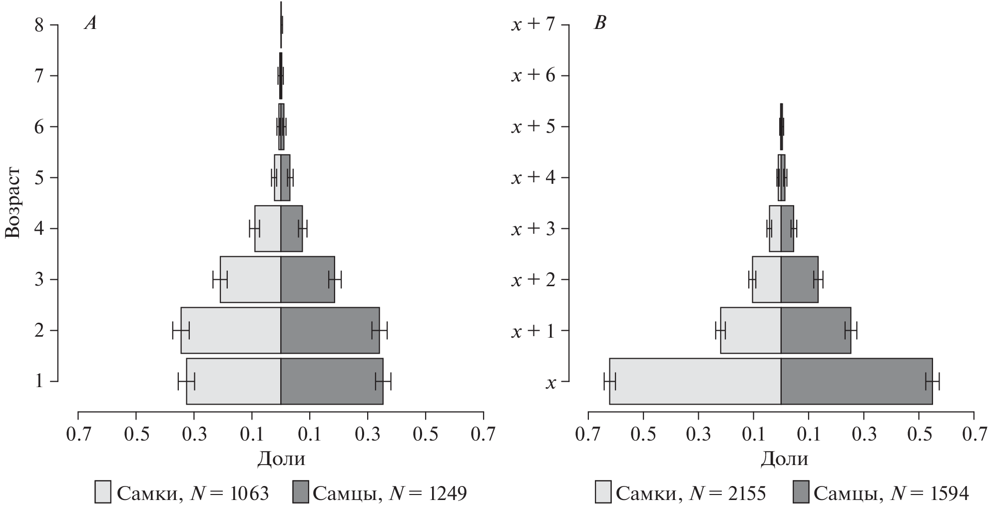 - Cormack R.M., 1964. Estimates of survival from the sighting of marked animals // Biometrika. V. 51. № 3/4. P. 429–438. https://doi.org/10.1093/biomet/51.3-4.429