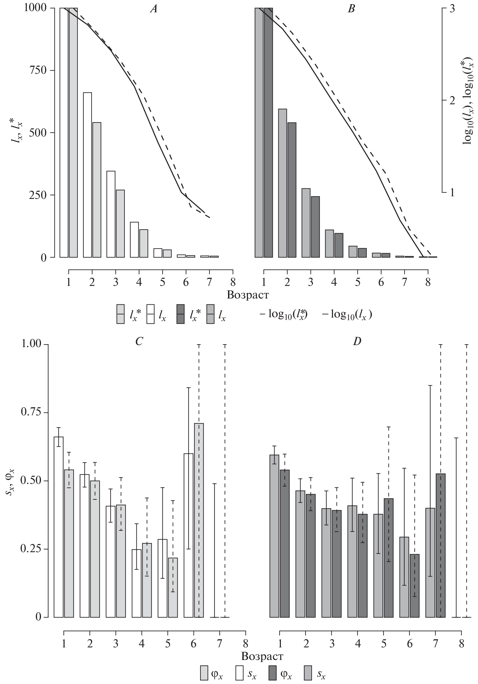 Key demographic parameters were calculated using the European pied flycatcher (Ficedula hypoleuca) as a model species for the study of bird population ecology. In the Tomsk Region, southeastern part of western Siberia, birds nesting in nest boxes situated in natural forests for 22 years were continuously studied. Where possible, life tables, probability models (CJS), and population matrix models were employed in the calculation of demographics. A comprehensive study of population characteristics made it possible to compare them with the results of other research and to demonstrate the degree of divergence in the estimation of demographic parameters obtained using different methods. On average, nestlings successfully left their nests in 87.6% of breeding attempts. The percentage of immigrants, residents, and autochthons in the static age distribution of females amounted to 41.7, 25.3, and 33.0%, respectively, vs 30.8, 25.3, and 43.9% in males, The maximum age for female autochthons was 7 years, compared to 8 years for male autochthons. Male residents lived to be x + 5 years old, while female residents lived to be x + 7 years old. Autochthonous males and females showed about the same local survival rates. These were the highest in yearlings (0.54) and gradually decreased with the age of individuals. The local survival rate of males of unknown origins is comparable to that of autochthonous males. Females of unknown origins had the lowest local survival rates. Birds could start nesting as young as one year old and as old as six years. Ringing revealed that 68.9% of males started breeding in their first year of life, compared to 59.9% of females that started in their first year. Only 39.2% of females and 46.3% of males among the birds that survived and returned to our control sites started breeding as yearlings, vs 66.9% of two-year-old females and 71.1% of males. The proportion of the birds that returned to their birth place amounted to 11.1%. Females produced 9.1 fledglings on average per lifetime, vs 9.6 fledglings for males. The minimum life expectancy for fledglings was 1.2–1.49 and 1.2–1.62 years, vs the maximum life expectancy for individuals that survived for one year, which was 1.94 and 1.96 years for males and females, respectively. For males and females, the generation time was 3.13–3.32 and 3.18–3.39 years, respectively. The sensitivity and elasticity analysis of the population growth rate based on the constructed projection matrix revealed that it was the survival rate of juvenile and sexually mature individuals between one and two years of age that primarily drove the population growth rate. Using the demographic data obtained for the species’ population in natural habitats in the Southeast of western Siberia and the population matrix model constructed on its basis, we believe it is possible to compare the state of populations inhabiting ecosystems, both unspoiled and disturbed (transformed), in various areas across the distribution range of the European pied flycatcher.
