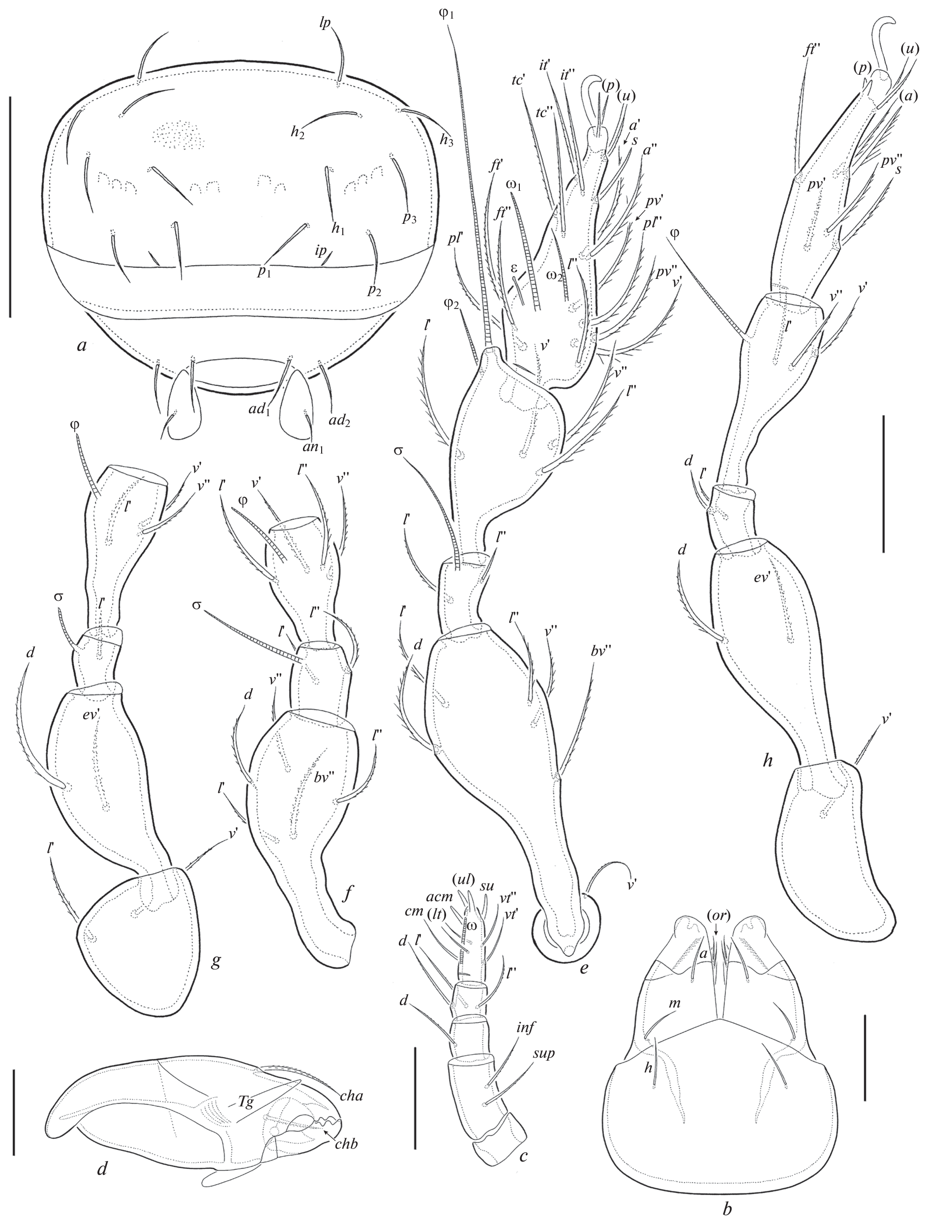 - Norton R.A., 1977. A review of F. Grandjean’s system of leg chaetotaxy in the Oribatei (Acari) and its application to the family Damaeidae // Dindal D.L., ed. Biology of oribatid mites. Syracuse, SUNY College of Environmental Science and Forestry. P. 33–61.