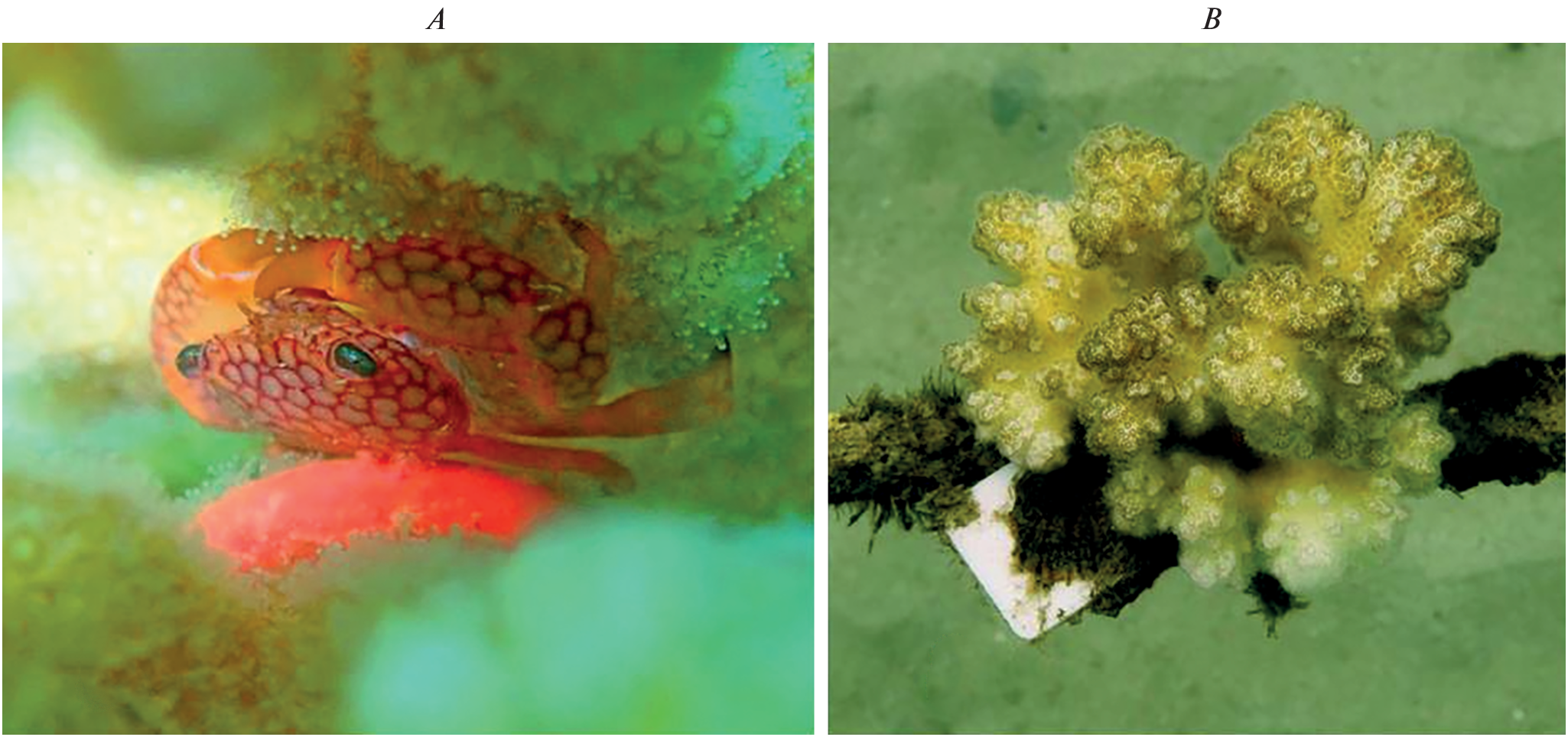 - Rouzé H., Lecellier G., Mills S.C., Planes S., Berteaux-Lecellier V., Stewart H., 2014. Juvenile T. spp. crabs can increase juvenile host coral survival by protection from predation // Marine Ecology Progress. V. 515. P. 151–159.