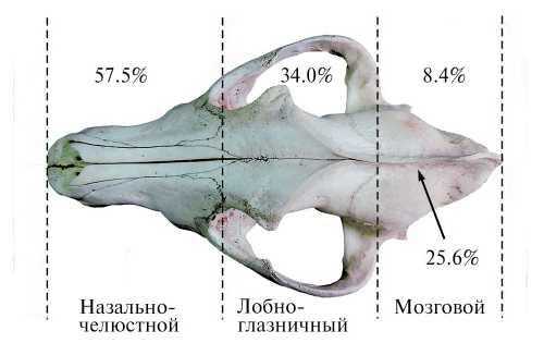 Поскольку гребень используется для прикрепления мощных челюстных мышц, в первую очередь височной мышцы, то и природу деформации следует искать, исходя из его функциональных особенностей. Сагиттальный гребень формируется в раннем возрасте по мере роста височных мышц, и у годовалых волков его каудальная часть, сформированная межтеменной костью, выражена очень хорошо, т. е. темпы его образования весьма высоки. Логично предположить, что его искривление может, а вернее, должно быть вызвано асимметричным воздействием височных мышц. Подобная дисфункция может возникать при травмах жевательной мускулатуры или ротовой полости, в результате чего животное пользуется преимущественно одной стороной челюсти.