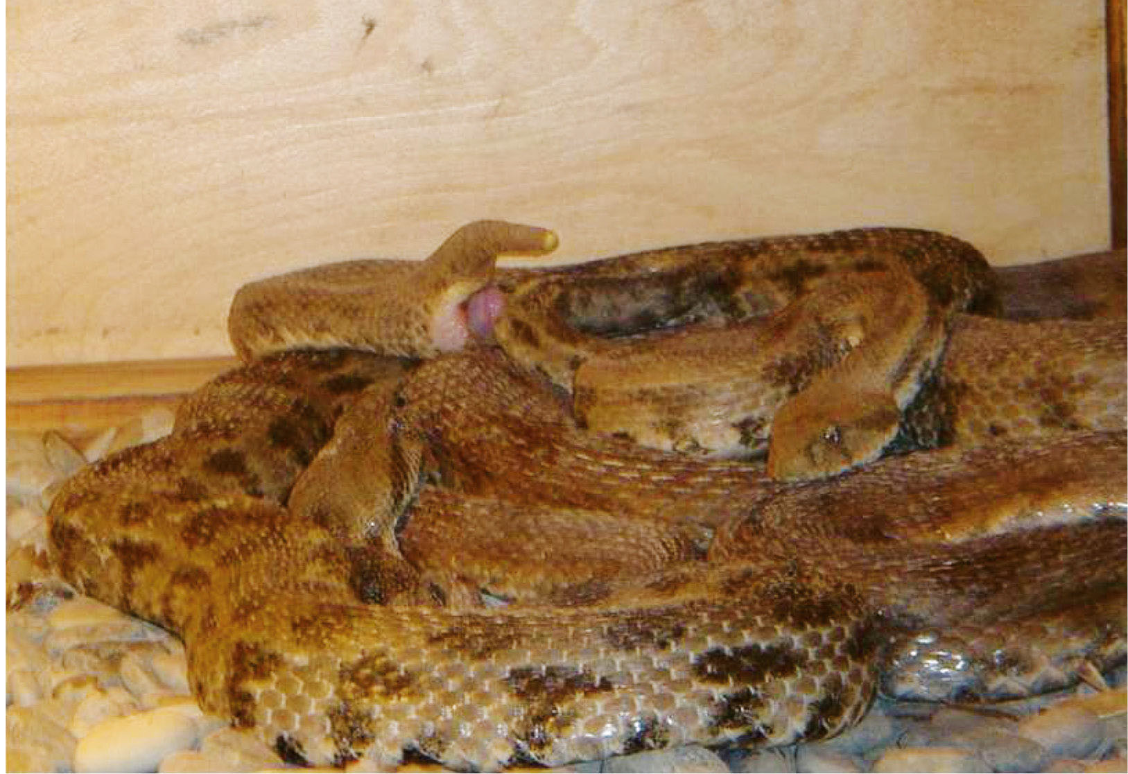 Рис. 1. Гюрзы, спаривающиеся в террариуме.