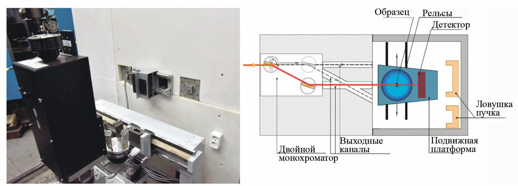 Станция ДРАКОН [19] (рис. 2) предназначена для визуализации макроструктуры объектов методами нейтронной радиографии и томографии на монохроматических нейтронах с субмиллиметровым пространственным разрешением. Прибор расположен на горизонтальном экспериментальном канале № 8. В устройство станции входит блок двухкристального монохроматора, что позволяет проводить эксперименты на монохроматических нейтронах с изменением длины волны падающего на образец нейтронного излучения в диапазоне 1,8 — 5 Å.