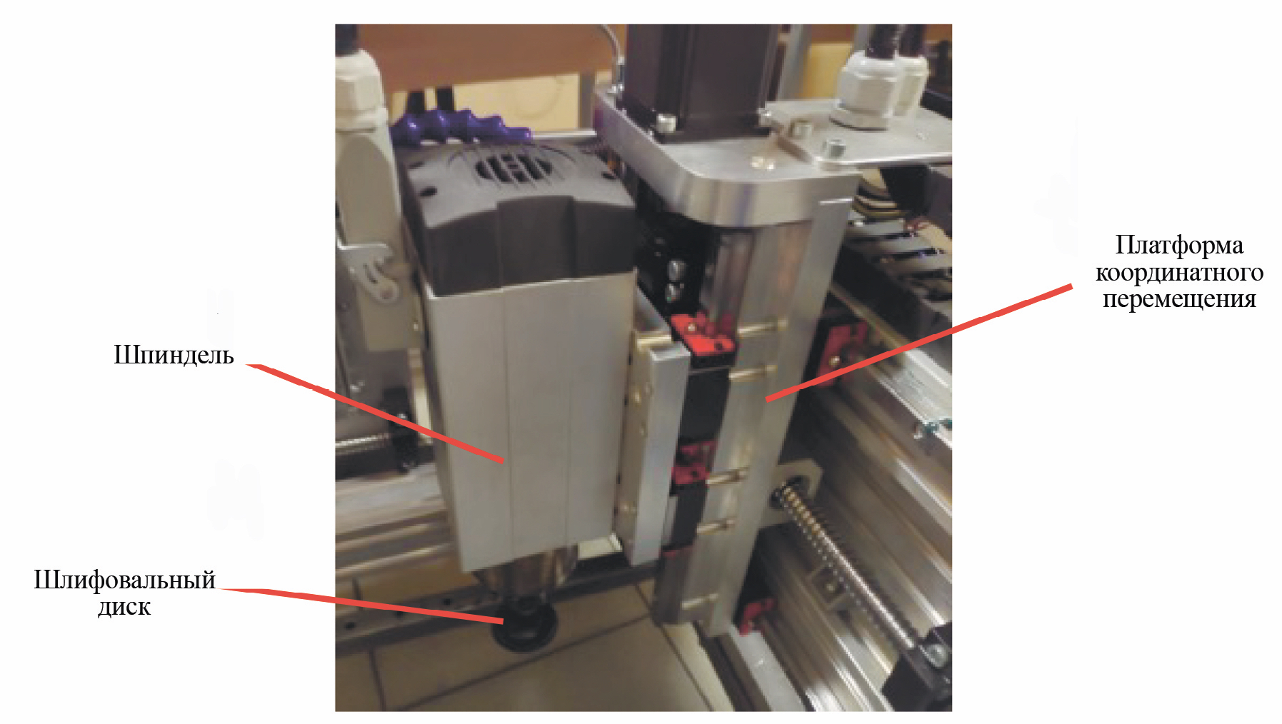 Блок подготовки поверхности представляет собой шпиндель мощностью 2,2 кВт, со скоростью вращения до 18000 об/мин и автоматизированным координатным перемещением по трем осям с точностью до 1 мкм (рис. 2).