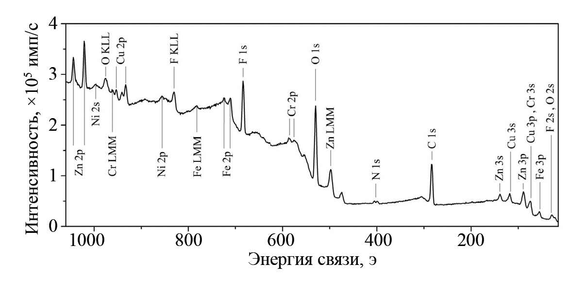 Рис. 9. Обзорный РФЭ-спектр напыления