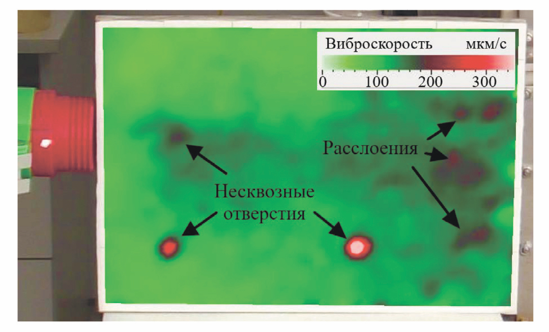 Все вышеперечисленные особенности необходимо учитывать при эксплуатации ГЭАП. Результаты неразрушающих испытаний показали возможность использования системы на основе газоразрядного электроакустического преобразователя для бесконтактной акустической стимуляции материалов. В области частот до 50 кГц методом сканирующей лазерной виброметрии обнаружены дефекты в виде несквозных отверстий и расслоений в стеклопластиковых композитах.