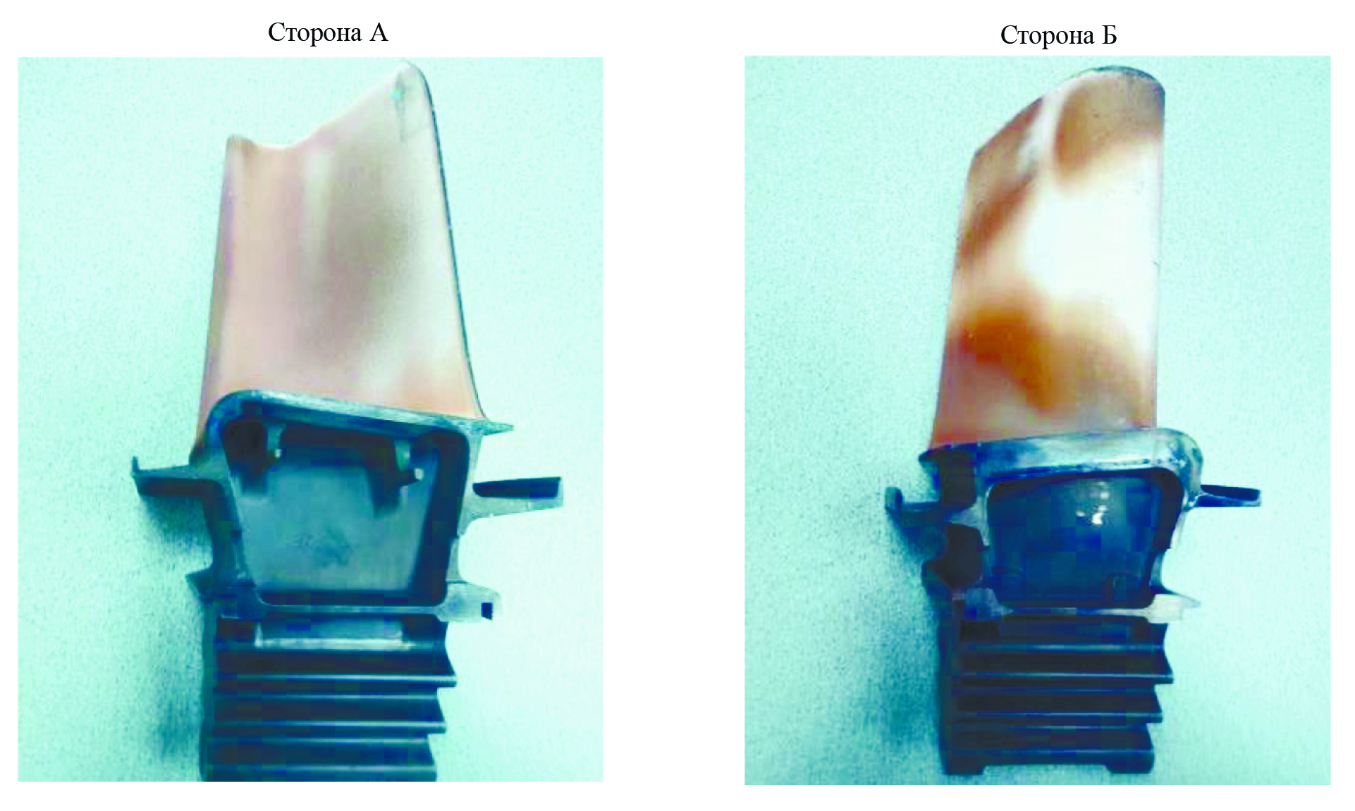 Рис. 1. Лопатка турбины ГТД с керамическим покрытием после наработки.