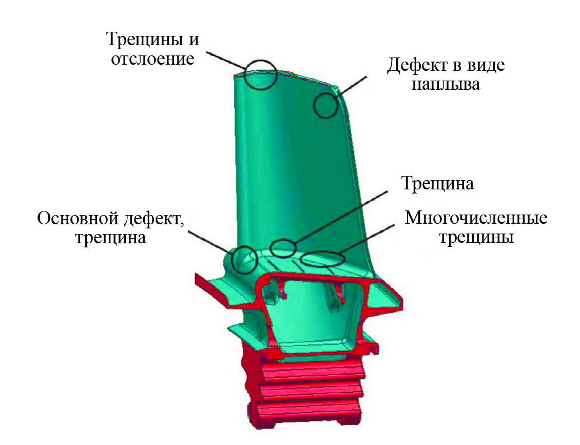 Турбинная лопатка является особо ответственной деталью, поэтому контролю ее состояния в ходе работы следует уделить особое внимание. В процессе эксплуатации на пере лопатки могут образовываться такие дефекты, как трещины и отслоения керамического покрытия. Наибольшую опасность представляют трещины, поскольку из керамического покрытия они могут распространиться в материал лопатки, что впоследствии может привести к ее разрушению [24].