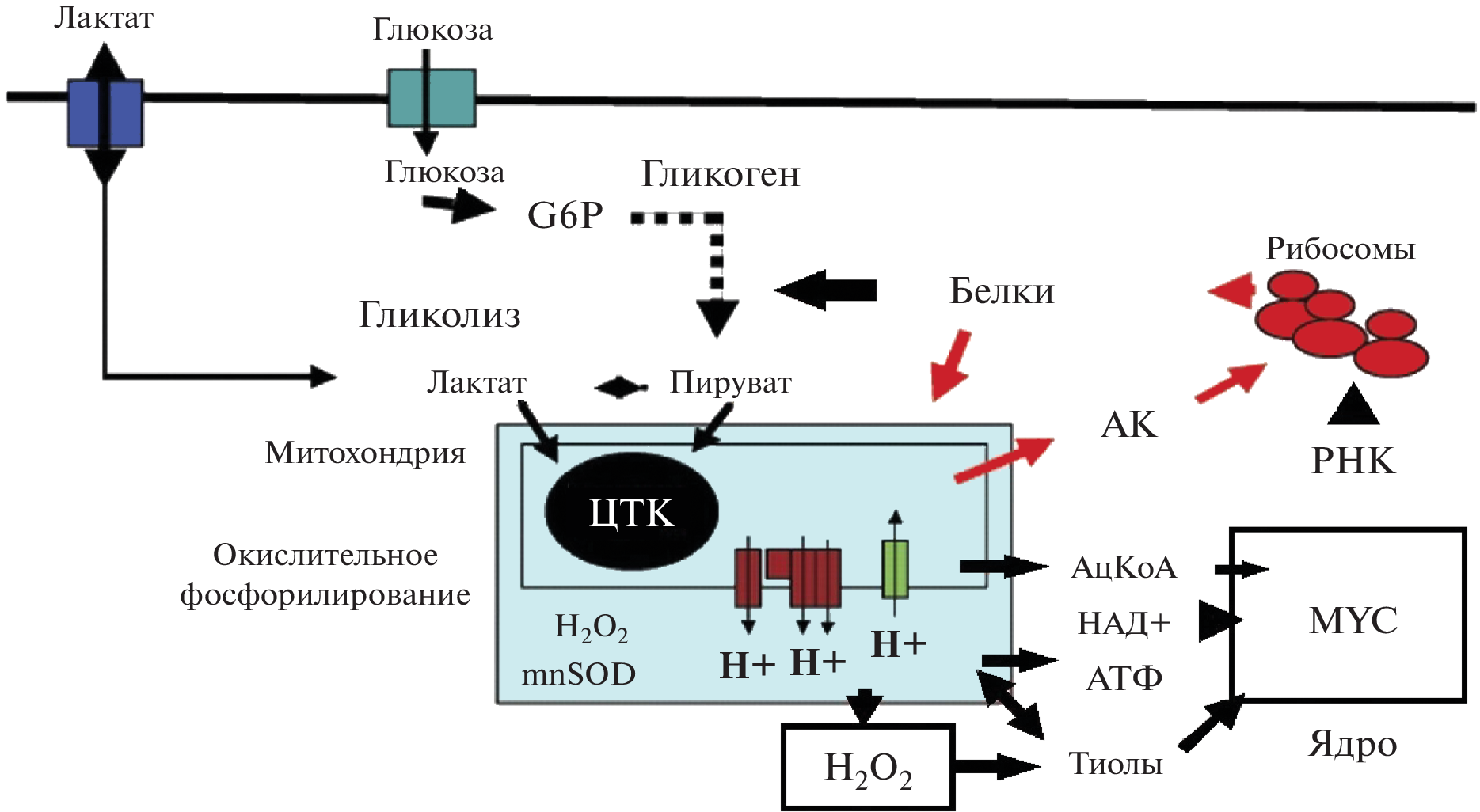 - Brooks G.A., Curl C.C., Leija R.G. et al. Tracing the lactate shuttle to the mitochondrial reticulum // Exp. Mol. Med. 2022. V. 54. № 9. P. 1332.