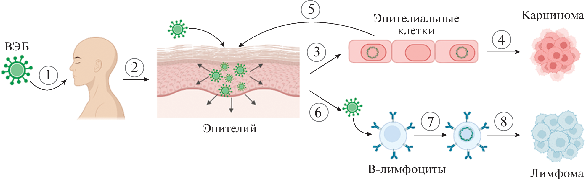 - Tsai M.-H., Lin X., Shumilov A. et al. The biological properties of different Epstein–Barr virus strains explain their association with various types of cancers // Oncotarget. 2017. V. 8. № 6. P. 10238.