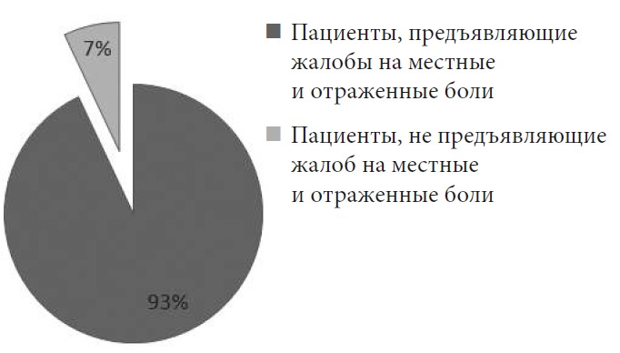 Рис. 3. Диаграмма частот возникновения местных и отраженных болей в группе с неосложненными формами ШГД (р = 122)