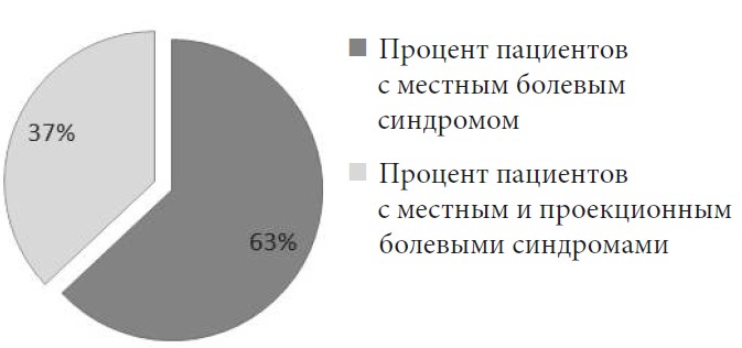 В группе с осложненными формами ШГД 63 % пациентов предъявляют жалобы на местные и проекционные боли (рис. 4).