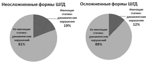 Рис. 5. Диаграммы частоты возникновения статико-динамических нарушений в группах пациентов с ШГД до лечения (р < 0,05)