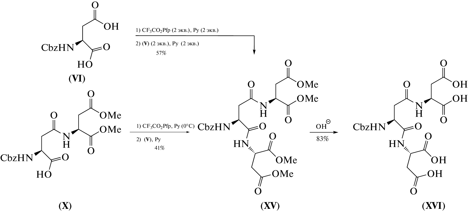 A new efficient synthetic approach for the preparation of Nα-protected β-L-aspartyl-L-aspartic acid dipeptide was elaborated. The distinctive features of the developed approach include utilization of readily available starting materials (Cbz-asparagine and dimethyl aspartate), aspartimide formation suppression employing electrostatic effect in a final deprotection step and an employment of a novel reagent (NaNO2/aqueous trifluoroacetic acid) for transformation of protected asparagine derivative into the corresponding aspartic acid. The developed method allowes preparation of aspartic acid derivatives that find application in carbohydrate polivalent interaction studies as well as in preparation of microbicidal dendrimeric constructs.