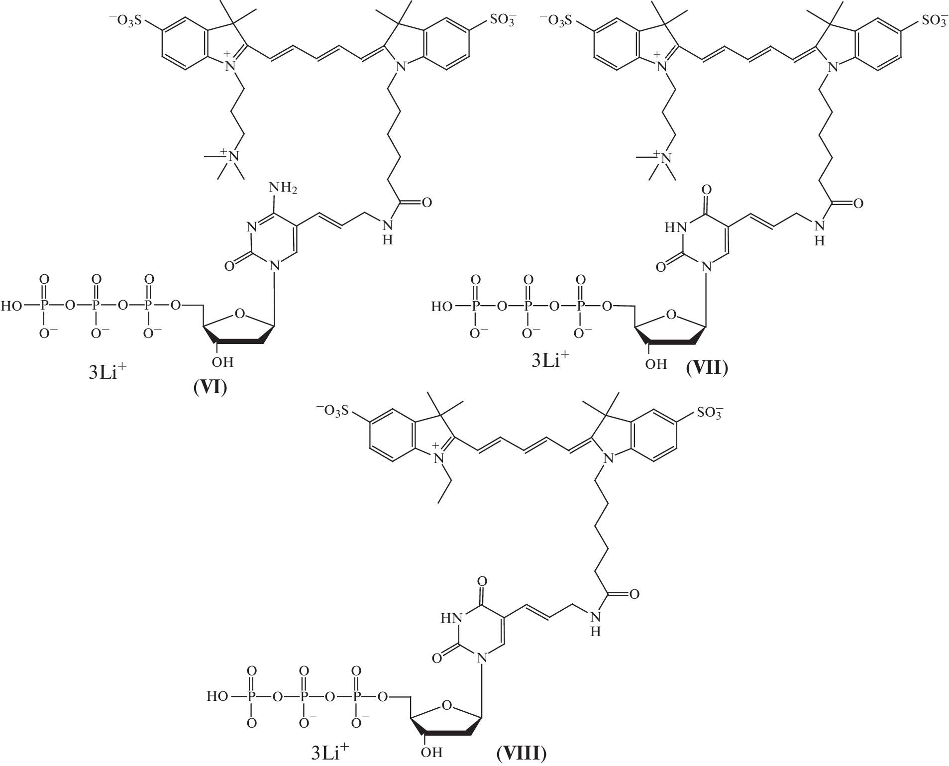 - Spitsyn M.A., Kuznetsova V.E., Shershov V.E., Emelyanova M.A., Guseinov T.O., Lapa S.A., Nasedkina T.V., Zasedatelev A.S., Chudinov A.V. // Dyes Pigments. 2017. V. 147. P. 199–210. https://doi.org/10.1016/j.dyepig.2017.07.052