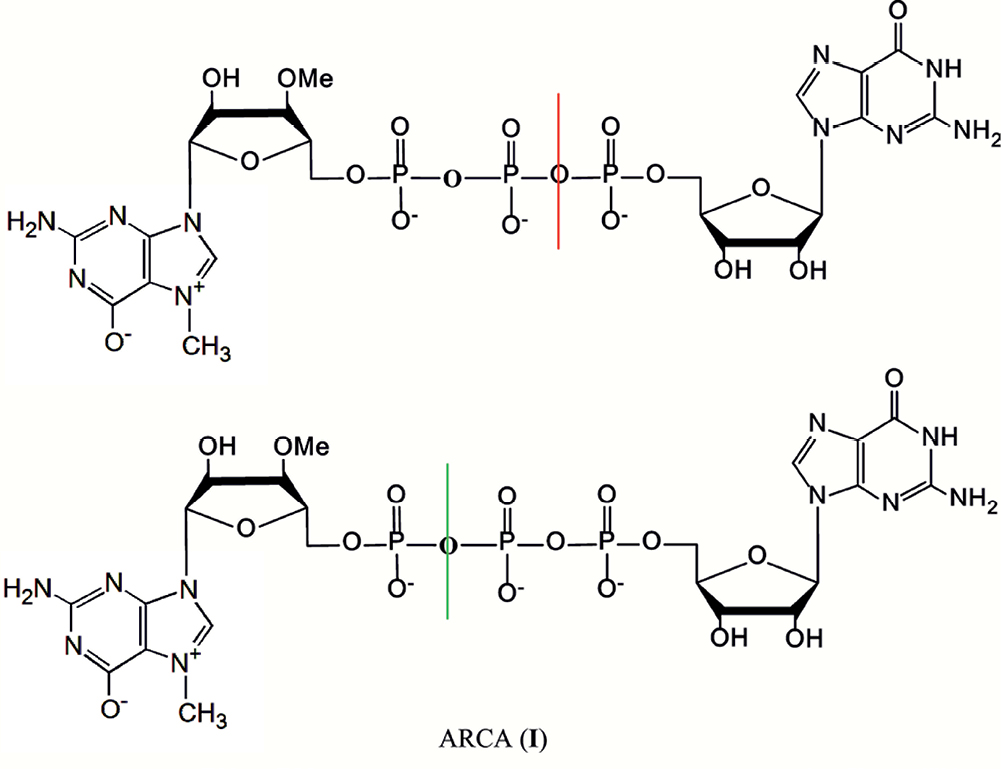 Общепринятая стратегия синтеза динуклеотидов ARCA (Anti-Reverse Cap Analog) заключается в следующем: 1) получение 5′-полифосфата (в простейшем случае – дифосфата) одного из нуклеозидов; 2) получение 5′-моно- или полифосфата второго нуклеозида; 3) активация одного из этих фосфатов (обычно через фосфоимидазолид) и последующая конденсация с образованием, например, Р1,Р3-трифосфата или Р1,Р4-тетрафосфата динуклеотида [1–5].