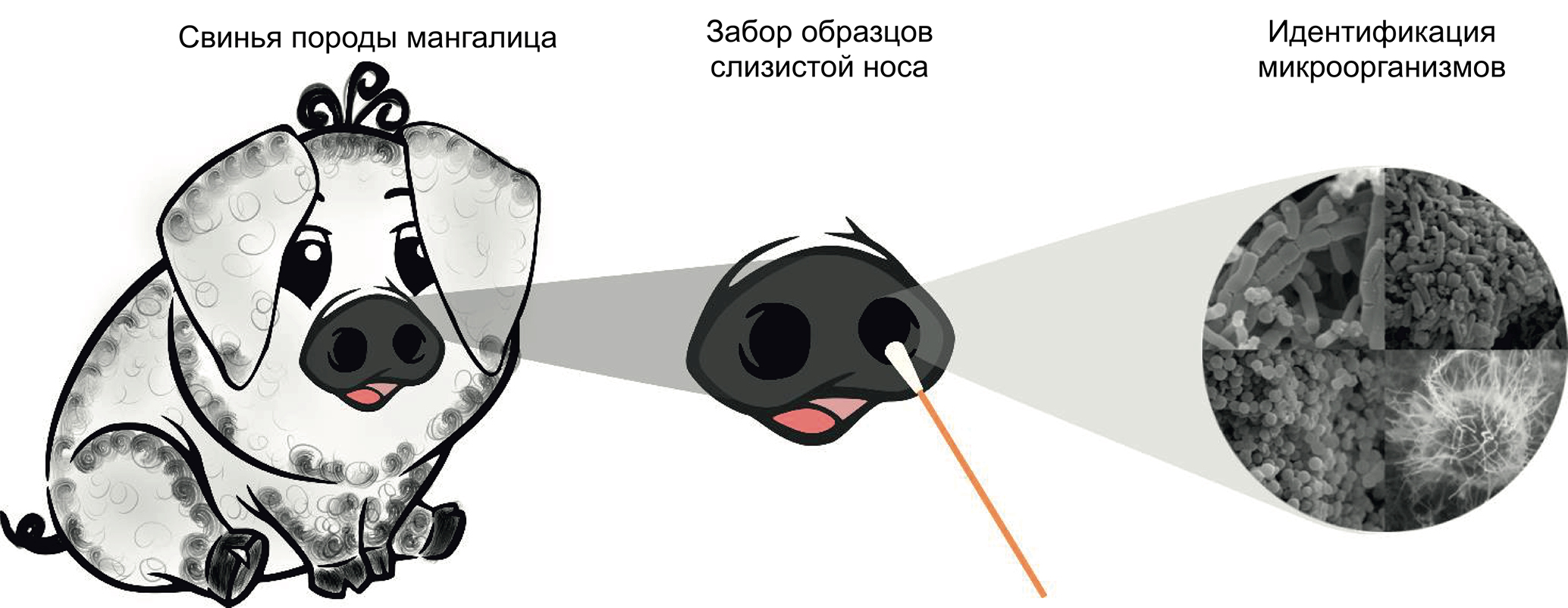 Стоит отметить, что нос свиньи – это не просто орган обоняния, а слизистая оболочка носа – не только часть верхних дыхательных путей, как у других животных, включая человека. Нос свиньи – это орган осязания, и с древних времен он служит диким и домашним свиньям для поиска и извлечения пищи, находясь в постоянном контакте с почвой, растительными остатками, отходами жизнедеятельности и т.д. Таким образом, в условиях постоянного притока микроорганизмов извне микробные сообщества, населяющие ноздри свиней, должны характеризоваться стабильностью и насыщенностью. Не будет преувеличением сказать, что с точки зрения микробной экологии нос свиньи – “горячая точка”, где благодаря постоянному взаимодействию между иммунной системой хозяина и разнообразным пулом микроорганизмов поддерживается высокая интенсивность межорганизменных взаимодействий – от симбиотических до антагонистических. С одной стороны, часть этой микробиоты состоит из видов, характерных для свиней, и может рассматриваться как относительно постоянный компонент назальной микробиоты, а с другой стороны, присутствует переходная микробиота, которая меняется в результате взаимодействия с внешней средой.