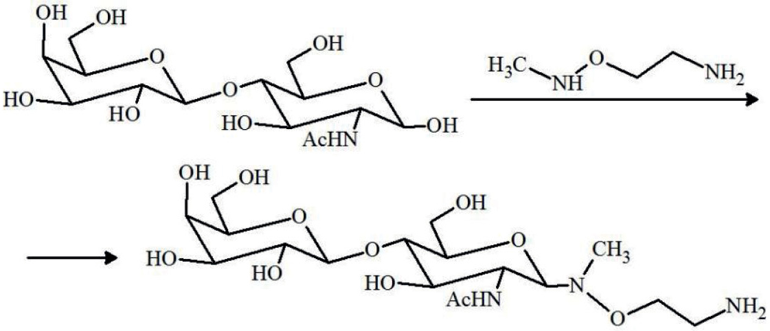 Рис. 2. Введение аминогруппы с помощью производного гидроксиламина на примере дисахарида N-ацетиллактозамина.