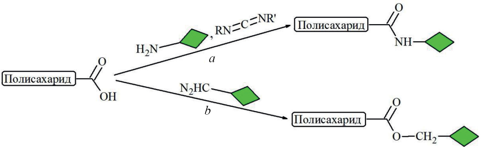 Взаимодействие с цианатами. Для мечения полисахаридов применяют изоцианаты и изотиоцианаты (рис. 3, реакции a и b) [57]. Их начали использовать для введения функциональных групп по гидроксилам полисахаридов с 1940-х гг.