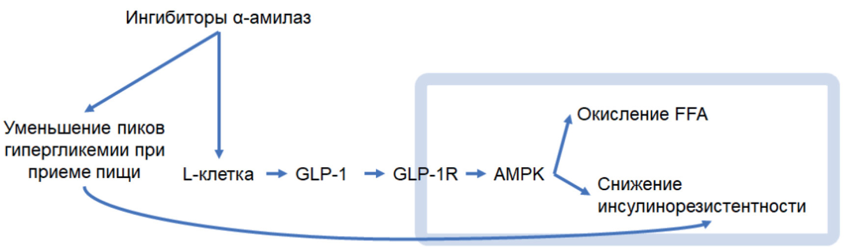 В последнее десятилетие было разработано много пероральных лекарственных препаратов для лечения сахарного диабета 2-го типа (СД2) [4]. К основным мишеням, на которые действуют данные препараты, относятся стимуляторы секреции инсулина, имитаторы и сенсибилизаторы инсулина, а также ингибиторы α-амилаз [5]. Эффективность и безопасность новых зарегистрированных препаратов еще предстоит подробно изучить [3]. На данный момент в стандартной терапии СД2 в качестве пероральных препаратов широко применяют метформин и акарбозу [6].