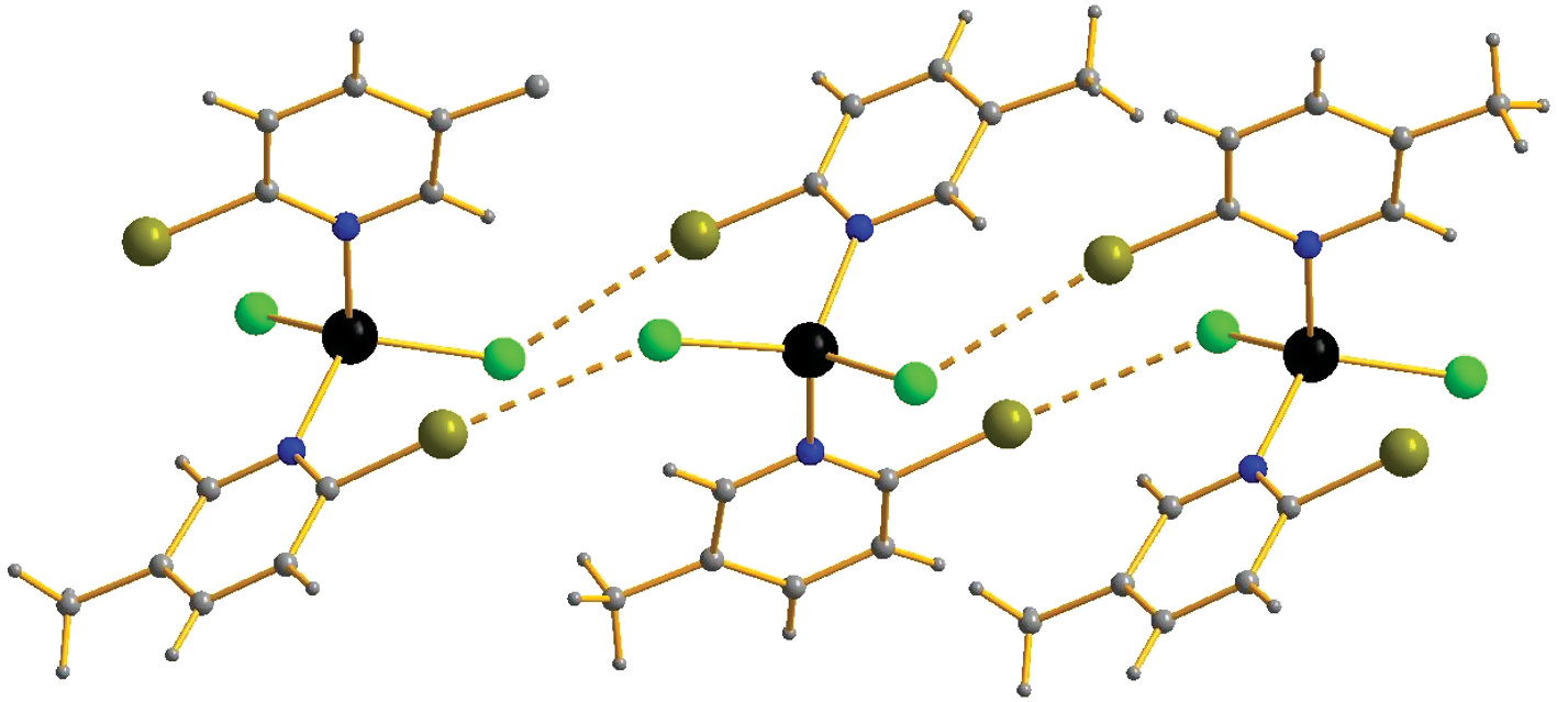 The heteroligand complexes [(2-Br-5-MePy)2ZnX2] (X = Cl (I), Br (II)) were prepared by the reaction of zinc(II) chloride or bromide with 2-bromo-5-methylpyridine and studied by X-ray diffraction (CCDC nos. 2204966 (I) and 2204967 (II)). The crystals of I and II contain Cl···Br and Br···Br halogen bonds, which connect the [MX2L2] moieties into supramolecular chains. The energies of these noncovalent interactions were estimated using quantum chemical calculations.