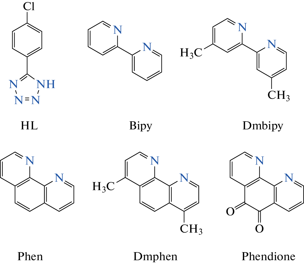 synthesized from 5-(4-chlorophenyl)-1H-tetrazole (HL), where Bipy is 2,2'-bipyridine, Dmbipy is 4,4'-