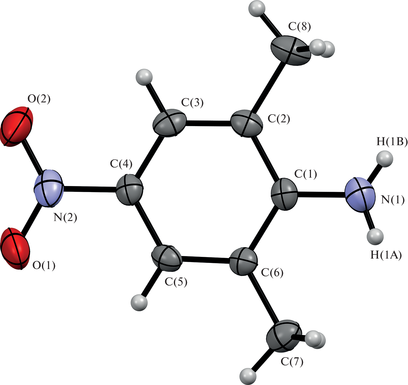 and II, as well as the ligand precursor 2,6-dimethyl-4-nitroaniline L4 (CIF files CCDC nos. 2255106 (I),