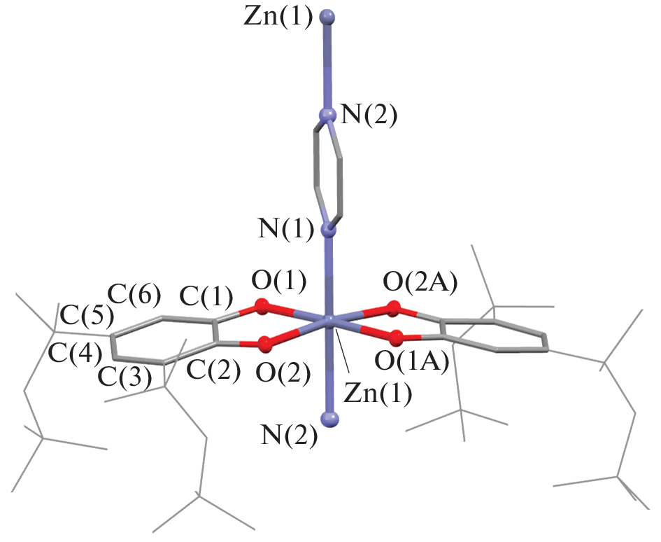 New zinc bis-o-semiquinolate complexes based on 3,5-di-tert-octyl-o-benzoquinone bearing the N-donor ligand (pyrazine) coordinated to the metal are synthesized. Two different products can be obtained depending on the synthesis method: coordination polymer (direct oxidation of metallic zinc with o-quinone (CIF file CCDC no. 2250574 (I)) or polynuclear cluster (exchange reaction (CIF file CCDC no. 2250575 (II)). The coordination polymer is linear and free of intermolecular π,π interactions between the aromatic fragments of the adjacent molecules. The magnetochemical study of complexes I and II shows that intramolecular antiferromagnetic exchange interactions between spins of the o-semiquinolate radical centers dominate.
