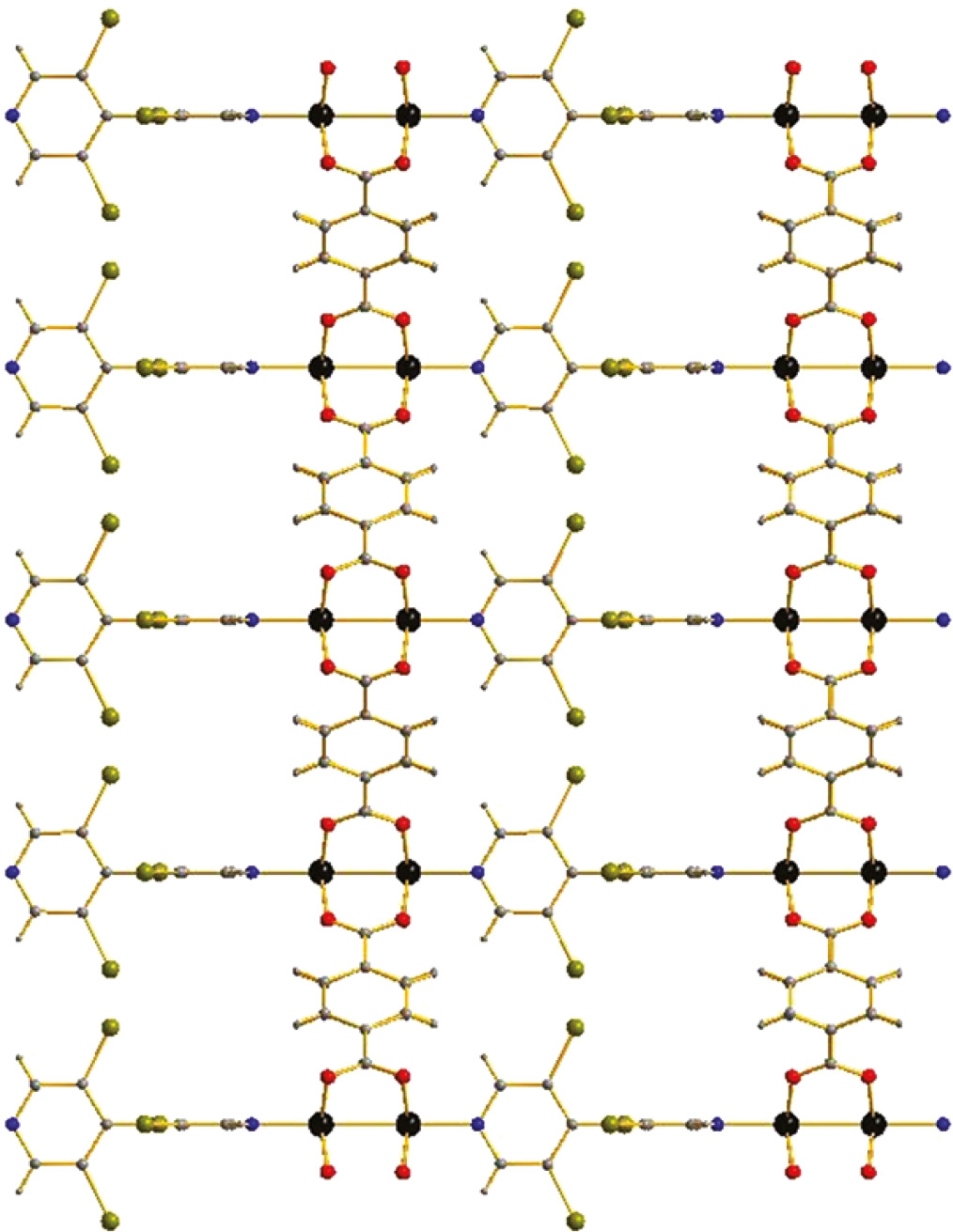 Рис. 2. Слои {[Co2Bdc4]} в структуре II. Бис-пиридильные лиганды не отображены.